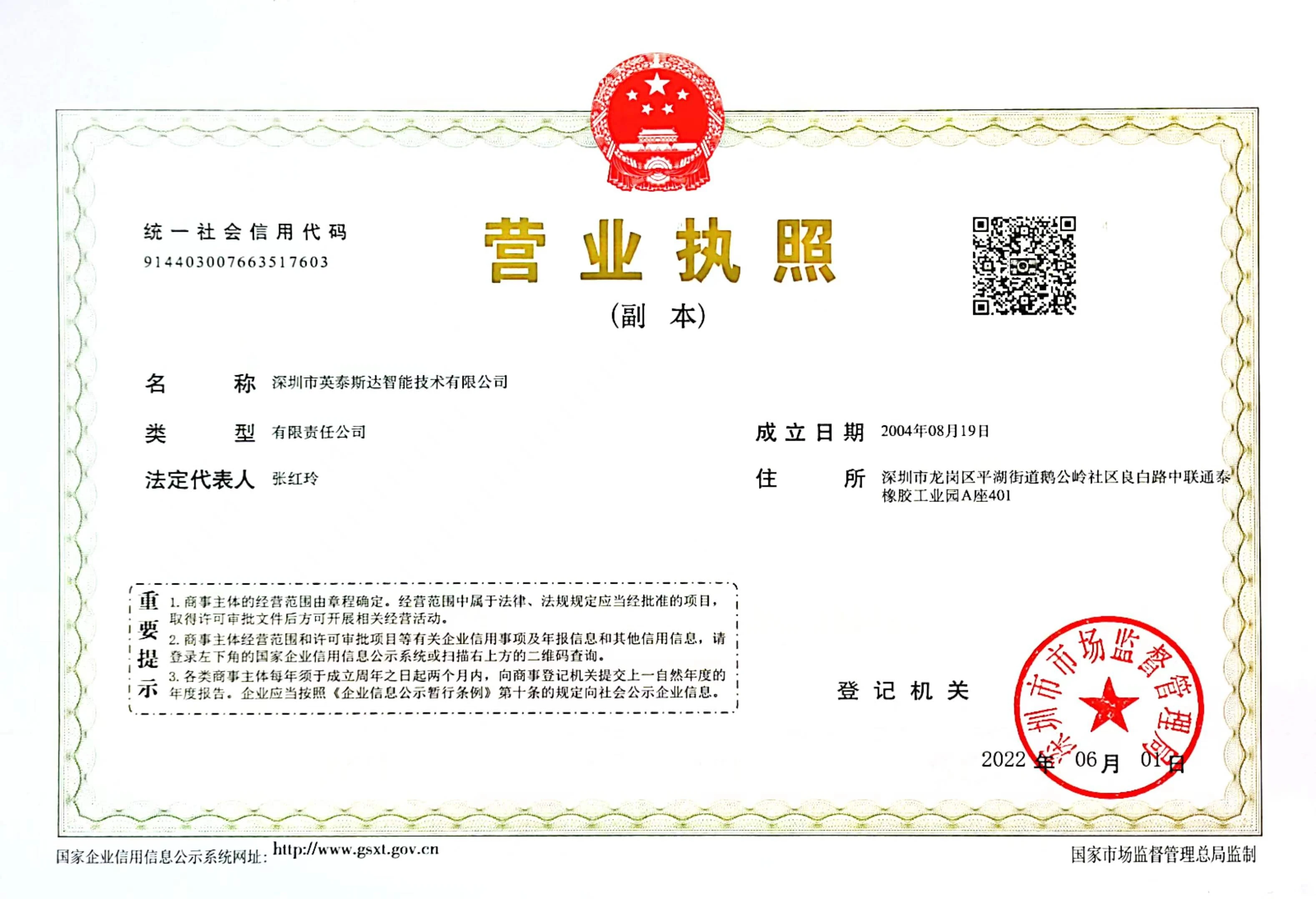 Registered address : 401, Building A, Zhonglian Tongtai Rubber Industrial Park, Liangbai Road, Egongling Community, Pinghu Street Shenzhen Guangdong China